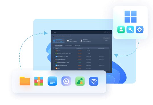 EaseUS Todo PCTrans Pro 將所有內容轉移到新電腦,讓體感就像使用舊電腦一樣。不僅是檔案和程式 — 您的帳戶、密碼、配置文件、個性化設定,和其他設定都會被複製轉移。