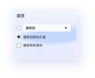 您可以選擇將資料備份還原到指令位置或替換現有檔案。