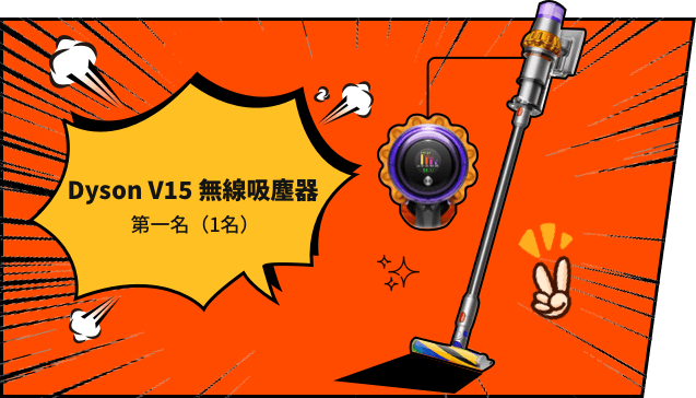 獲獎人數:1人 獲獎獎品:Dyson V15 無線吸塵器