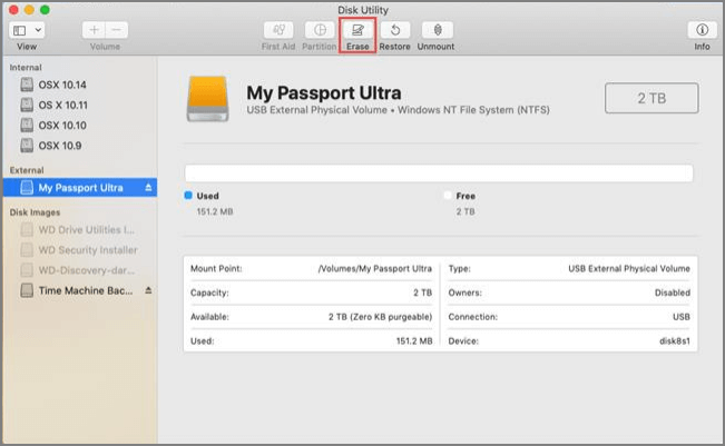 步驟 1. 單擊「磁碟工具」,檢查左側的側邊欄,然後選擇 WD my passport。