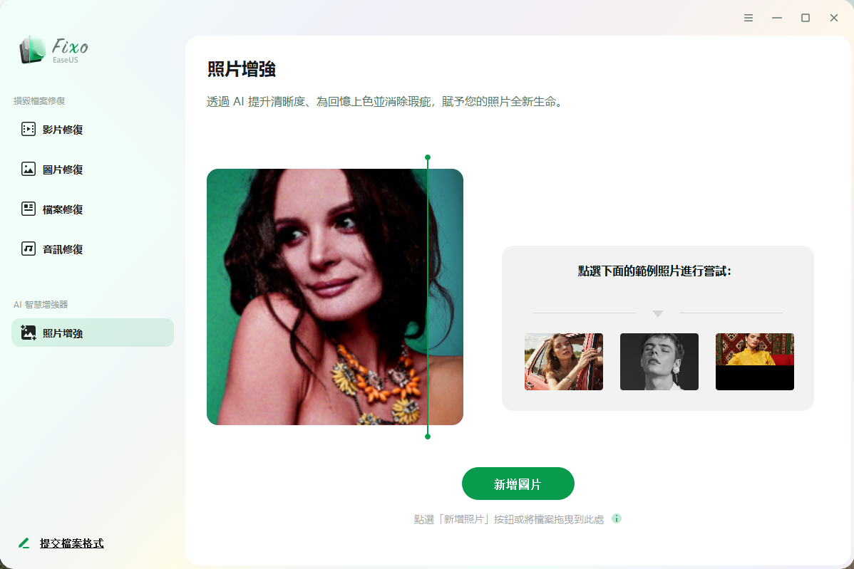 運用尖端 AI 技術,在短短幾秒內輕鬆提升影像品質和解析度。使用 Fixo 照片增強工具提高照片清晰度,展現最細膩的細節,呈現出色效果。