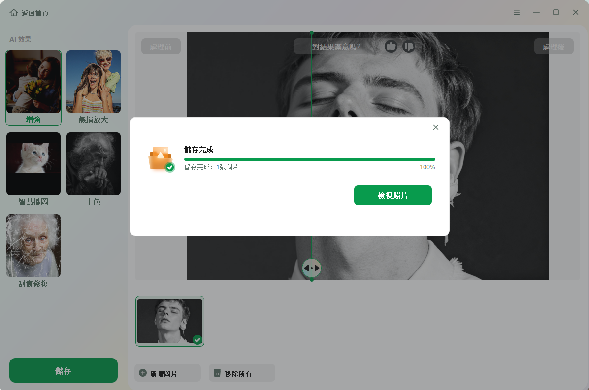 運用尖端 AI 技術自動提升照片品質,增強細節和色彩,為珍貴回憶注入新生命。