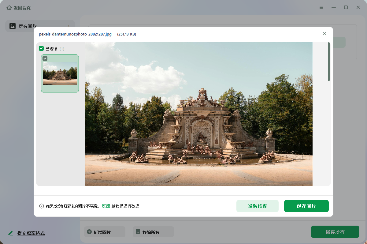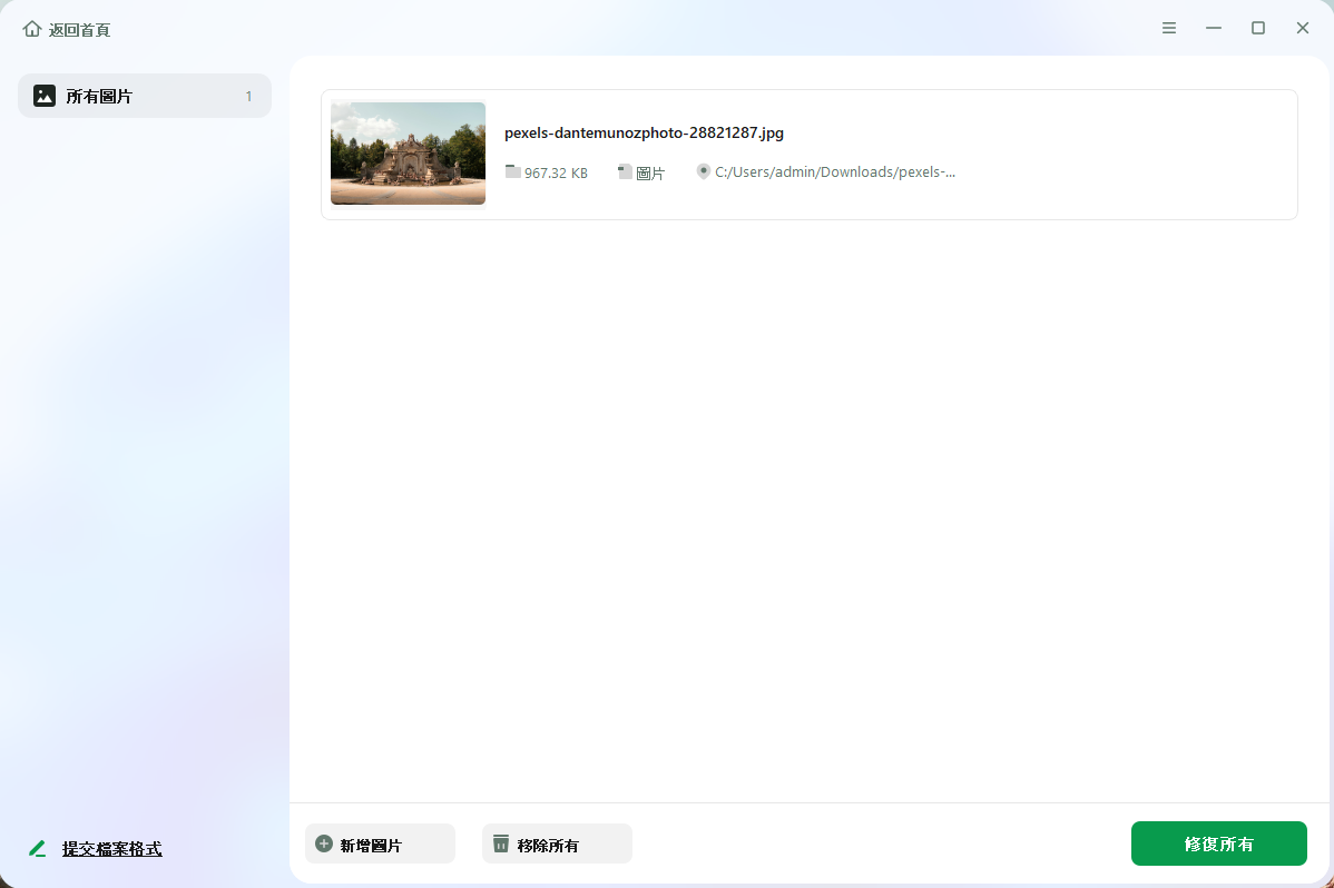 點擊「修復」按鈕即可批次修復損壞的影片、照片或檔案。