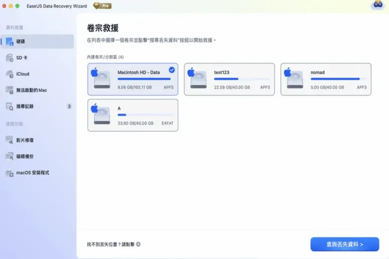 資料遺失時,請立即停止使用以避免進一步損失。