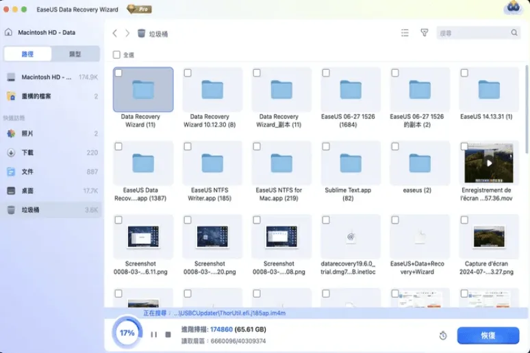 其他免費程式掃描不到的檔案,EaseUS 的深度掃描卻能「結構化」找回的案例非常多。尤其清空資源回收桶一段時間後,還是能很好地透過檔案碎片重建完整的資料。