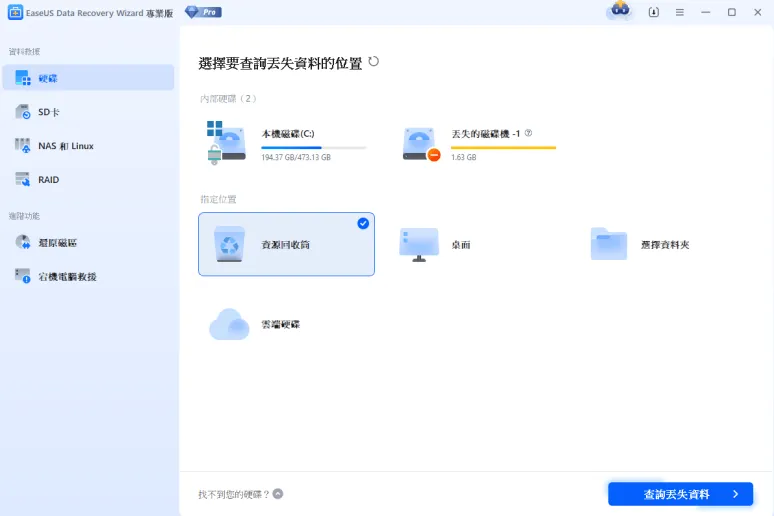 未經過資源回收桶直接刪除檔案,或為了釋放空間而清空資源回收桶時,若沒有專業復原軟體,檔案復原會非常困難。但使用安全可靠的 EaseUS 復原軟體,即使新手也能輕鬆復原檔案。