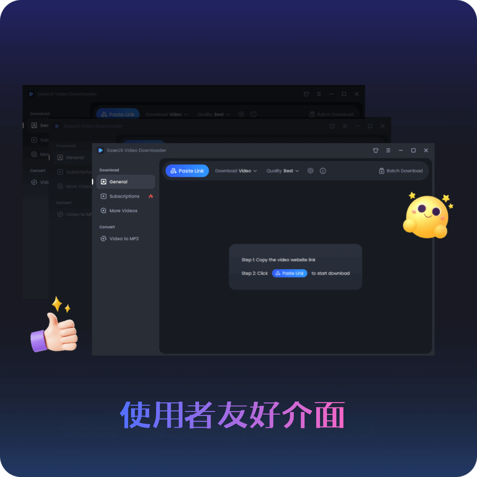 "EaseUS Video Downloader 是一款能夠從網路下載幾乎任何你想要的影片的程式。除了 YouTube、Facebook 和 Twitter 等常見網站外,它還支援許多其他影片網站或平台,只需提供連結即可儲存影片。"